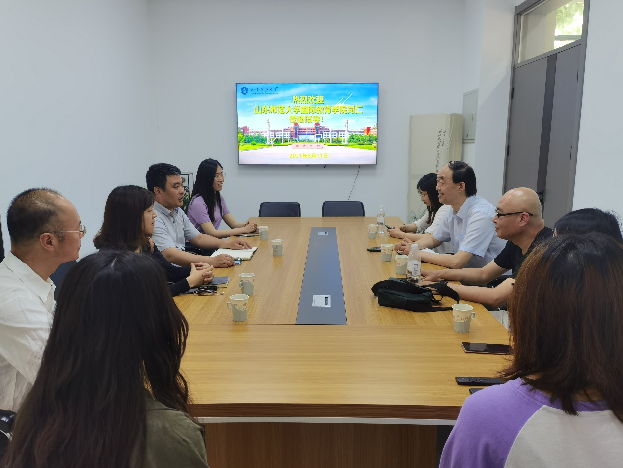 隨后,雙方就當前疫情形勢下各自國際交流與合作工作及留學(xué)生管理基本情況進行了交流,并就留學(xué)生聯(lián)合培養(yǎng)、學(xué)歷生教育、獎學(xué)金設(shè)置等問題進行了討論。我院教師還參觀了實習(xí)學(xué)校的教學(xué)環(huán)境、實習(xí)生辦公室等場所,對山東科技大學(xué)國際交流學(xué)院的辦學(xué)特色與實習(xí)生的工作生活環(huán)境有了切實的了解。