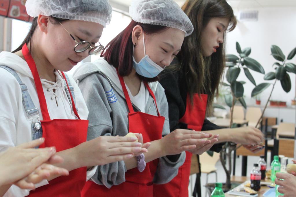 活動(dòng)伊始,大家在餐廳師傅的講授和示范下一起制作月餅。和餡、揉面、壓模,大家按照制作工序認(rèn)真地操作,從開始不能熟練地掌握面餅和餡料的配比,到最后經(jīng)過餐廳師傅的指導(dǎo),每位師生都能游刃有余地制作出漂亮的月餅。拿起自己親手制作的精美月餅,大家紛紛拍照留念,以此寄托對(duì)故鄉(xiāng)的思念及對(duì)中秋佳節(jié)的美好祝愿。