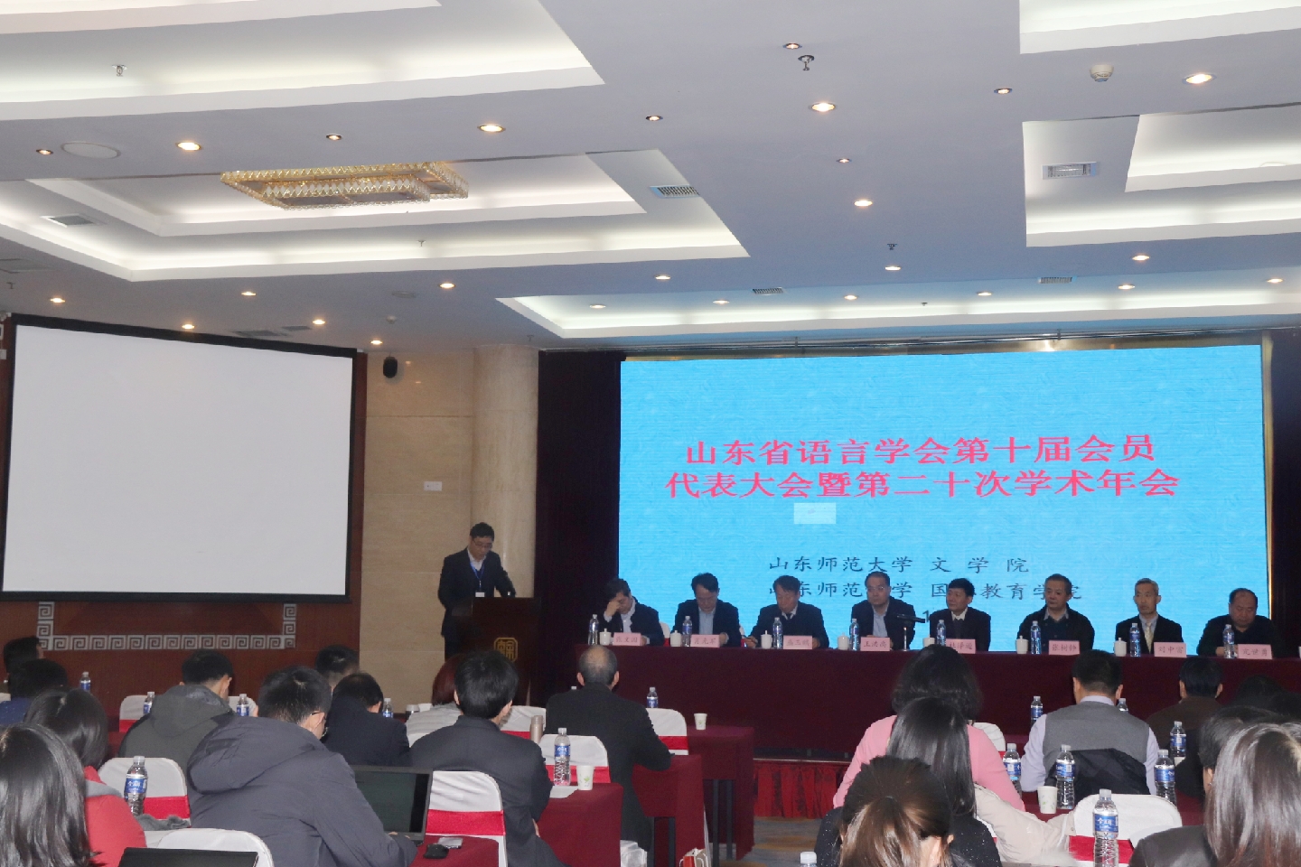12月20日—22日,由文學(xué)院和國(guó)際教育學(xué)院共同主辦的山東省語言學(xué)會(huì)第十屆代表大會(huì)暨第二十次學(xué)術(shù)年會(huì)在我校成功舉行。校黨委常委、副校長(zhǎng)王洪禹研究員,魯東大學(xué)副校長(zhǎng)亢世勇教授,山東省語言學(xué)會(huì)會(huì)長(zhǎng)張樹錚教授,山東師范大學(xué)文學(xué)院肖光軍書記、國(guó)際教育學(xué)院院長(zhǎng)馬茂祥教授等領(lǐng)導(dǎo)和嘉賓出席開幕式。來自山東大學(xué)、中國(guó)海洋大學(xué)、山東師范大學(xué)、青島大學(xué)、濟(jì)南大學(xué)、魯東大學(xué)、曲阜師范大學(xué)、聊城大學(xué)等近20所高校語言學(xué)界的80多位專家學(xué)者參加本次學(xué)術(shù)會(huì)議。開幕式由文學(xué)院張文國(guó)教授主持。