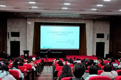 王建勤教授近2個(gè)小時(shí)的精彩講座,引發(fā)了與會(huì)師生地?zé)崃矣懻摗W詈螅踅淌谥赋觯Z(yǔ)言調(diào)節(jié)教學(xué)模式與其他教學(xué)方法相比,具有明顯的教學(xué)效應(yīng)和學(xué)習(xí)效應(yīng)。但在漢語(yǔ)“調(diào)節(jié)教學(xué)”模式中,口語(yǔ)“調(diào)節(jié)教學(xué)”實(shí)驗(yàn)難度較大,仍然是一個(gè)薄弱環(huán)節(jié),需要大家進(jìn)一步努力。