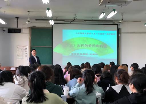 授課伊始,王其和老師用2020年人口普查最新五大姓名排行數(shù)據(jù)將古今姓氏變化作為教學切入點,由今及古、從古到今,循序漸進,精彩生動的語言引導同學們走進古代姓氏和名號的世界,激發(fā)起同學們對課程內(nèi)容的學習興趣。從教學PPT設計到清晰明了的板書呈現(xiàn),再到聲情并茂的講解,王老師引經(jīng)據(jù)典、深入淺出,詩詞古文更是信手拈來,令人如沐春風。同時,王老師的教學內(nèi)容還將古今優(yōu)秀傳統(tǒng)文化的思政內(nèi)容自然融入課堂,充分啟發(fā)了學生思維,活躍了課堂氣氛,取得了很好的課堂效果。