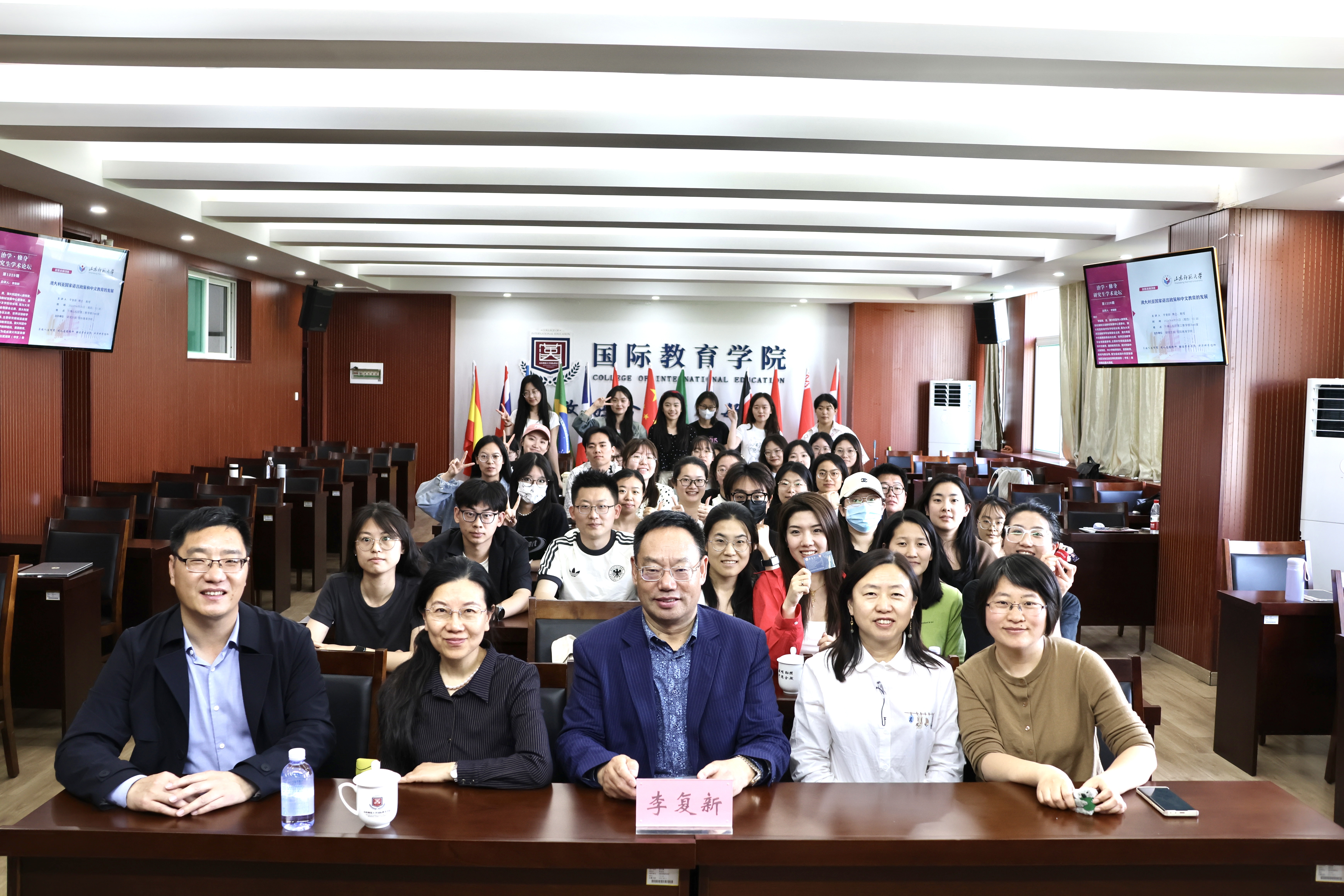 4月25日,由國(guó)際教育學(xué)院和研究生院共同主辦的“治學(xué)·修身”研究生學(xué)術(shù)講壇于千佛山校區(qū)教學(xué)三樓3546報(bào)告廳舉辦。澳大利亞華人教育家、澳大利亞中文教師聯(lián)會(huì)主席李復(fù)新教授受邀為我院師生作題為“澳大利亞國(guó)家語(yǔ)言政策和中文教育的發(fā)展”的學(xué)術(shù)講座。