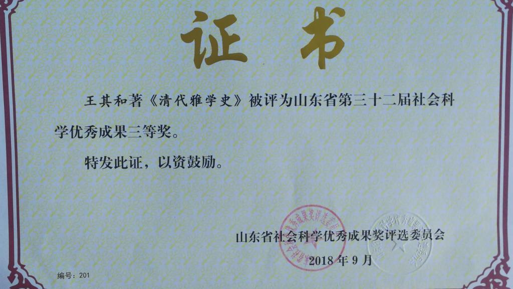 近日,省社會(huì)科學(xué)優(yōu)秀成果評獎(jiǎng)委員會(huì)公布了山東省第三十二屆社會(huì)科學(xué)優(yōu)秀成果獎(jiǎng)獲獎(jiǎng)名單。我院王其和教授的專著《清代雅學(xué)史》、劉章才副教授的論文《18世紀(jì)英國關(guān)于飲茶的爭論》榮獲三等獎(jiǎng)。這是我院首次獲得兩項(xiàng)省社科優(yōu)秀成果獎(jiǎng),實(shí)現(xiàn)了學(xué)院省級科研成果獎(jiǎng)的新突破。
