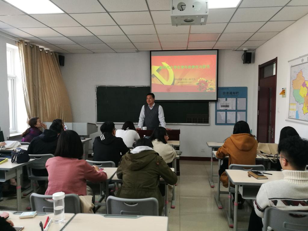 新春伊始,萬象更新。新時(shí)代、新學(xué)期,根據(jù)學(xué)校統(tǒng)一部署,學(xué)院開展黨委(黨總支)書記、副書記上新學(xué)期第一堂思政課活動(dòng),3月13日,學(xué)院黨總支副書記徐方杰以《新時(shí)代大學(xué)生青年的責(zé)任與擔(dān)當(dāng)》為題開講,學(xué)院2015級(jí)、2016級(jí)、2017級(jí)全體研究生參加。