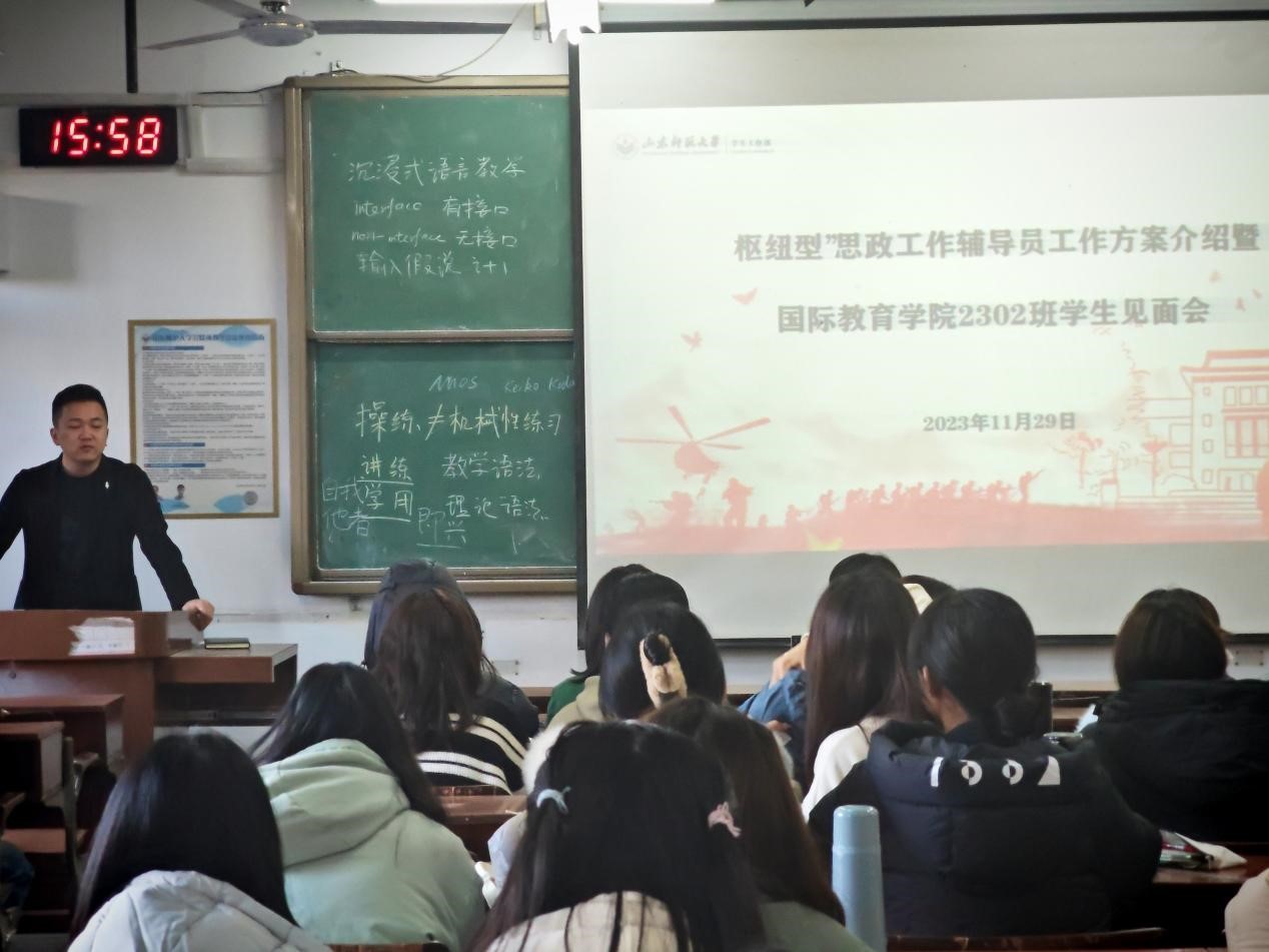 為進(jìn)一步落實(shí)立德樹人根本任務(wù),強(qiáng)化管理與服務(wù)職能,在各學(xué)院學(xué)生工作中充分發(fā)揮橋梁紐帶作用,學(xué)生工作部啟動(dòng)“樞紐型”思政工作輔導(dǎo)員工作項(xiàng)目,陳凱到我院掛職擔(dān)任2023級(jí)2班輔導(dǎo)員。該項(xiàng)目能夠推動(dòng)學(xué)工隊(duì)伍充分發(fā)揮工作積極性,整合優(yōu)質(zhì)教育管理資源,為我院學(xué)生工作提供專業(yè)支持和堅(jiān)實(shí)保障,有助于構(gòu)建學(xué)校大思政工作格局。