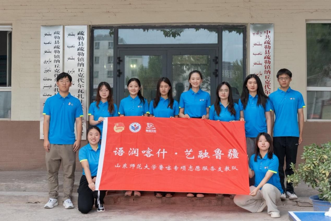 五是開展社會實踐。學(xué)院積極組織暑期“三下鄉(xiāng)”社會實踐活動,其中“語潤喀什·藝融魯疆”魯喀專項志愿服務(wù)隊前往喀什開展支教工作。在課程中向喀什學(xué)生傳授中華優(yōu)秀傳統(tǒng)文化,傳遞中華民族共同體意識,在實踐調(diào)研中搭建起一座文化交融的橋梁,思考新時代民族文化融合發(fā)展的新路徑。