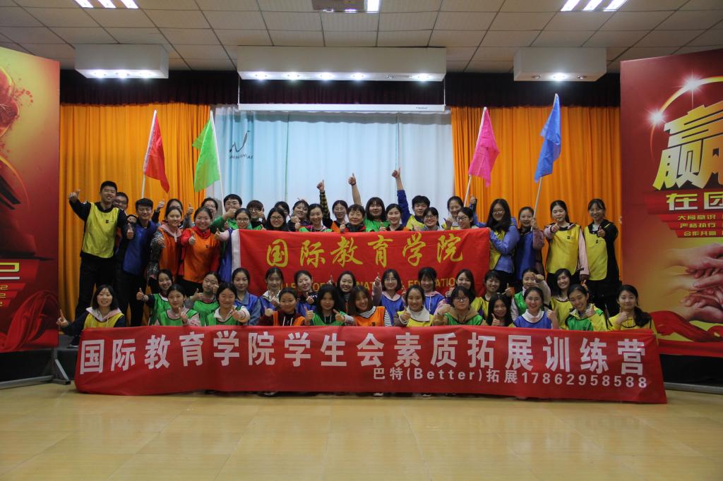 圖為國際教育學(xué)院“學(xué)生會素質(zhì)拓展訓(xùn)練營系列活動”素質(zhì)能力拓展訓(xùn)練合照
