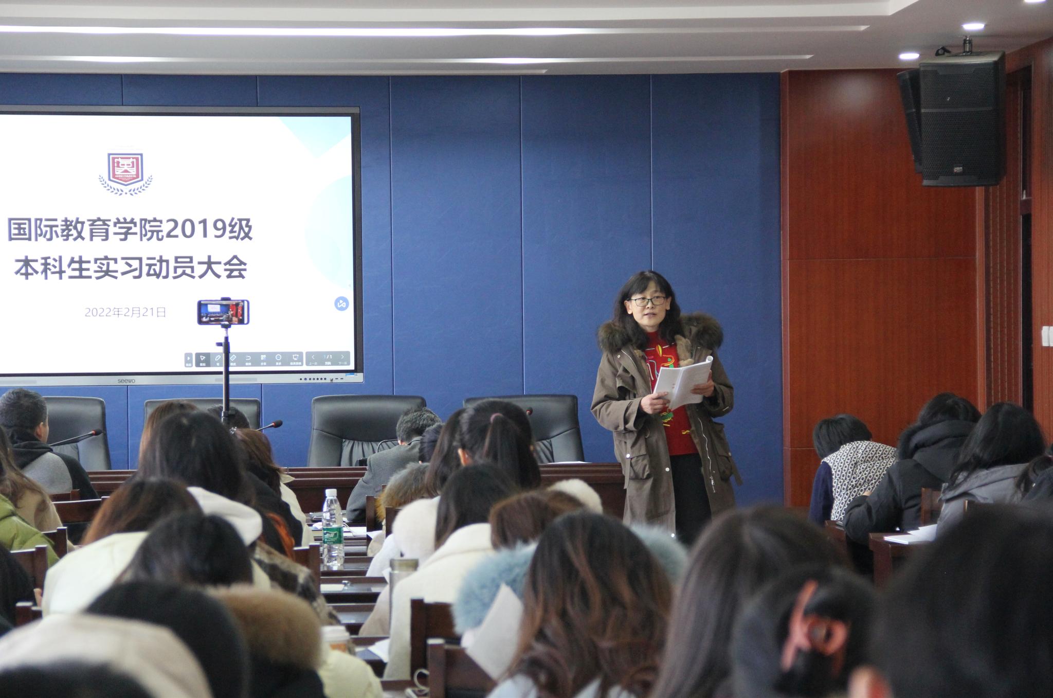為推動(dòng)2019級(jí)學(xué)生實(shí)習(xí)工作的順利進(jìn)行,2022年2月21日,國(guó)際教育學(xué)院于千佛山校區(qū)第三教學(xué)樓3543教室召開(kāi)2019級(jí)實(shí)習(xí)動(dòng)員大會(huì)。國(guó)際教育學(xué)院院長(zhǎng)馬茂祥、黨委副書(shū)記孫全志、教師劉麗、鄭翠出席會(huì)議。本次會(huì)議由輔導(dǎo)員魏雪玲主持,2019級(jí)學(xué)生通過(guò)線上與線下相結(jié)合的方式參與其中。