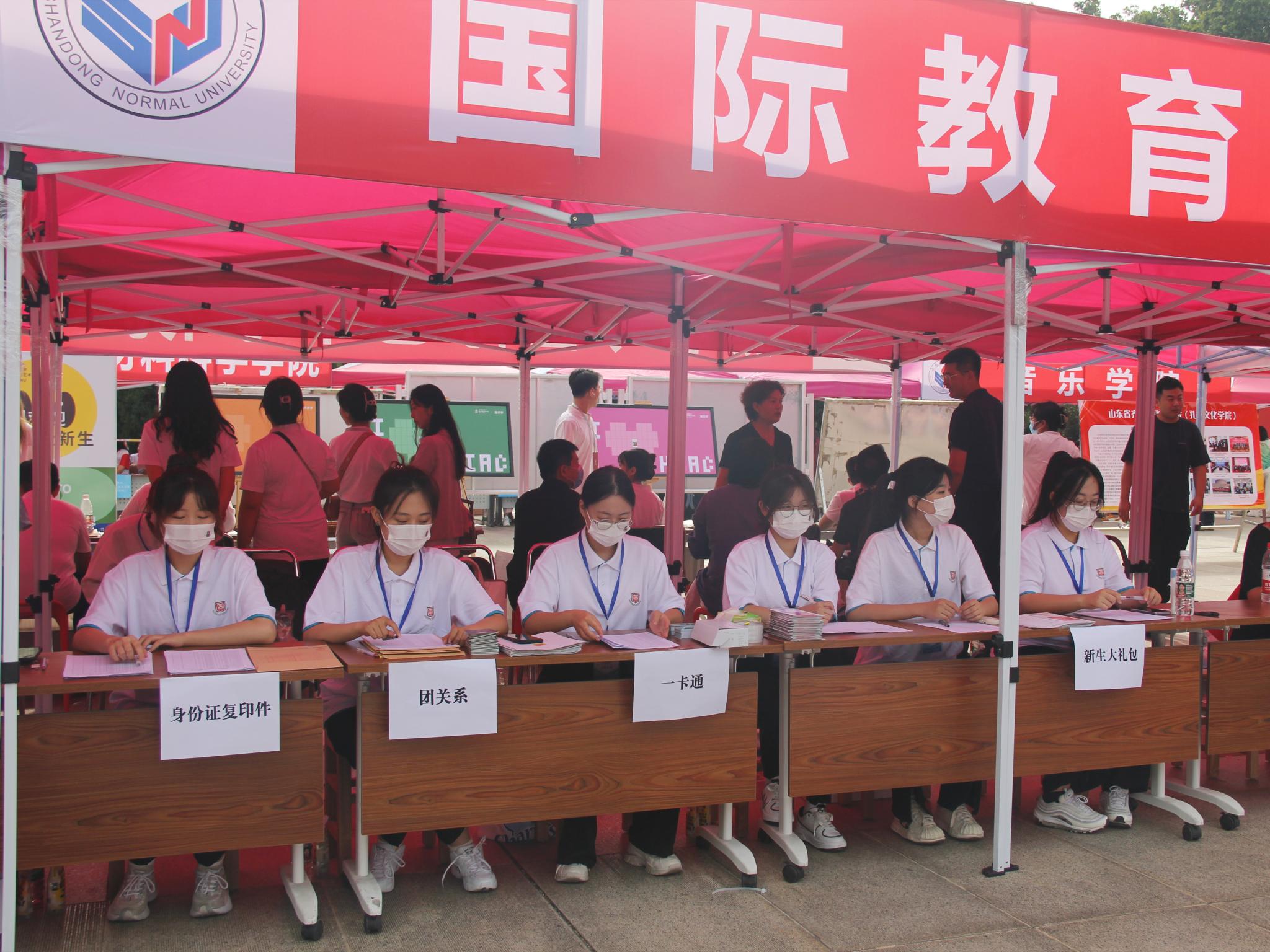金秋迎新生,師大煥新彩。8月27日、28日,山東師范大學國際教育學院在嚴格執(zhí)行防疫措施的前提下,于千佛山校區(qū)東方紅廣場迎來了來自五湖四海的2022級本科新生。國際教育學院黨委書記劉金凱、院長馬茂祥、黨委副書記徐方杰、副院長王其和、工會主席王秀明等領導親臨現場指導迎新工作,輔導員陳雨、劉琪、魏雪玲及學生會工作人員全程參與其中。
