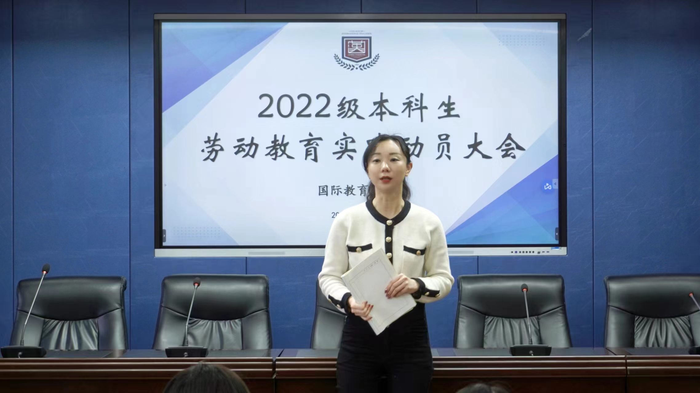 為增強(qiáng)學(xué)生勞動(dòng)意識(shí),提升學(xué)生勞動(dòng)素質(zhì),3月8日,2022級(jí)本科生勞動(dòng)教育實(shí)踐動(dòng)員大會(huì)于千佛山校區(qū)教學(xué)三樓3543教室順利舉行,國(guó)際教育學(xué)院副院長(zhǎng)鄭翠出席會(huì)議。本次會(huì)議由輔導(dǎo)員劉琪主持,2022級(jí)全體同學(xué)到場(chǎng)參會(huì)。