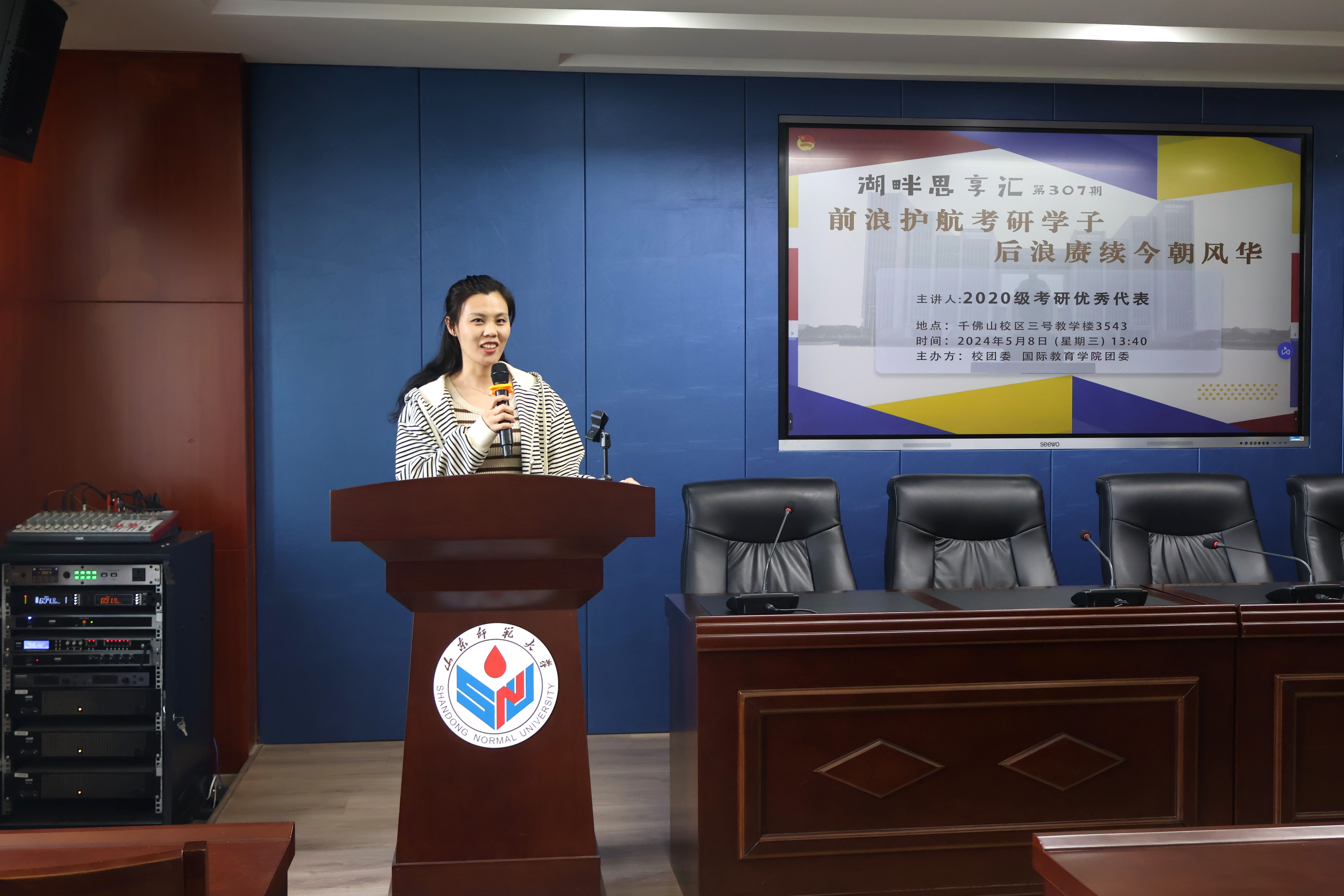 為幫助學(xué)生了解考研動向,積累備考經(jīng)驗,2024年5月8日下午,校團委、國際教育學(xué)院團委于千佛山校區(qū)教學(xué)三樓3543教室舉辦了第307期湖畔思享匯系列活動之“前浪護航考研學(xué)子,后浪賡續(xù)今朝風(fēng)華”主題講座。此次講座特邀國際教育學(xué)院12名2020級考研優(yōu)秀代表作主講人分享考研經(jīng)驗和學(xué)習(xí)方法,本次講座由輔導(dǎo)員魏雪玲主持,2021級部分學(xué)生參加。