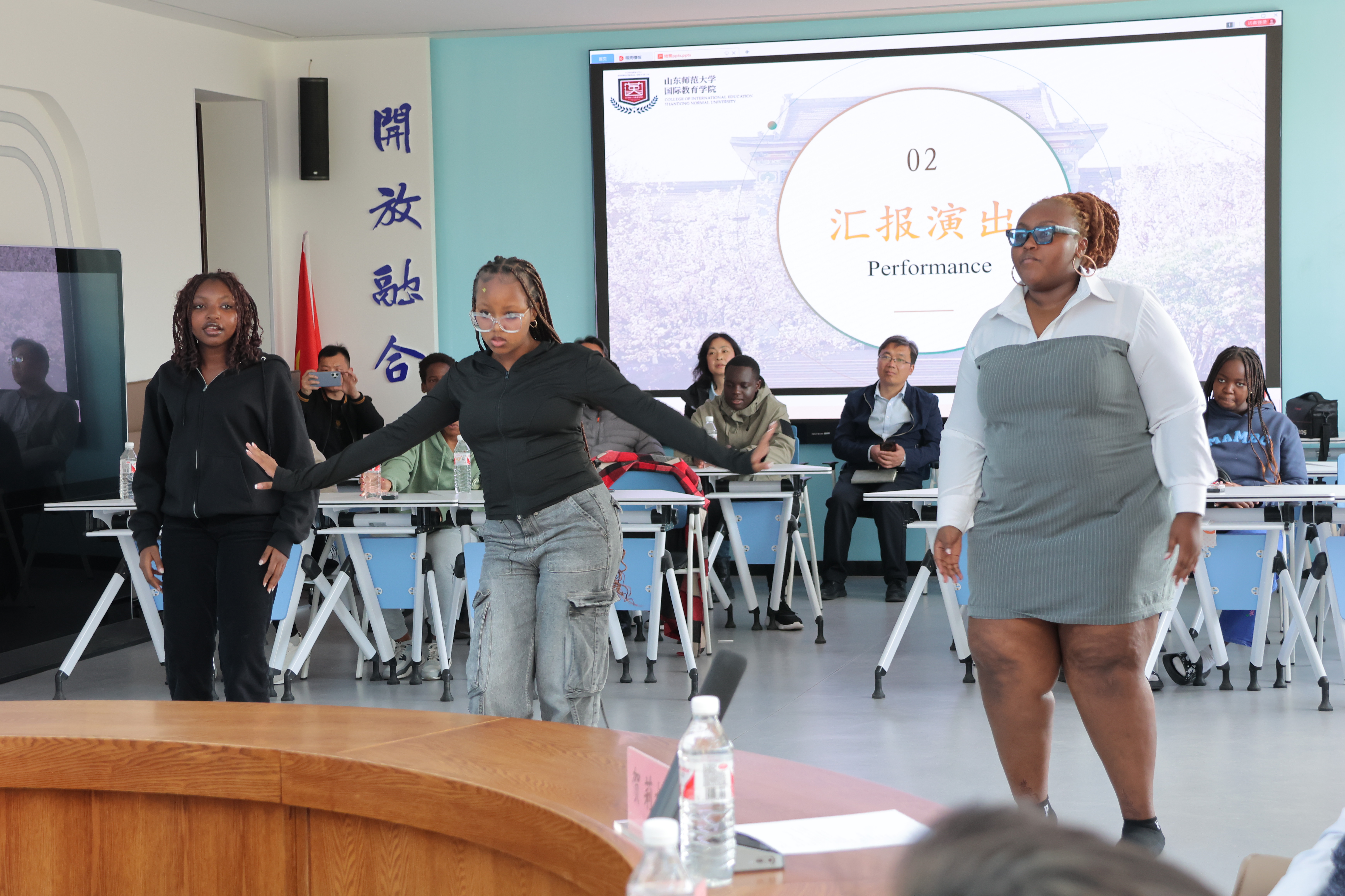 儀式現(xiàn)場(chǎng)還播放此次研學(xué)回顧視頻,一幕幕畫(huà)面勾起同學(xué)們的共鳴,現(xiàn)場(chǎng)掌聲與歡呼不斷。隨后,學(xué)員們展示了研修成果:肯尼亞學(xué)員演唱中文經(jīng)典歌曲《甜蜜蜜》,歌聲清澈,感情真摯;三位肯尼亞學(xué)員以熱情洋溢的舞蹈展現(xiàn)非洲大地的活力;中國(guó)武術(shù)表演則颯爽利落,將現(xiàn)場(chǎng)氣氛推向高潮。最后,劉金凱與馬茂祥為同學(xué)們頒發(fā)結(jié)營(yíng)證書(shū),為此次研修畫(huà)上圓滿的句號(hào)。