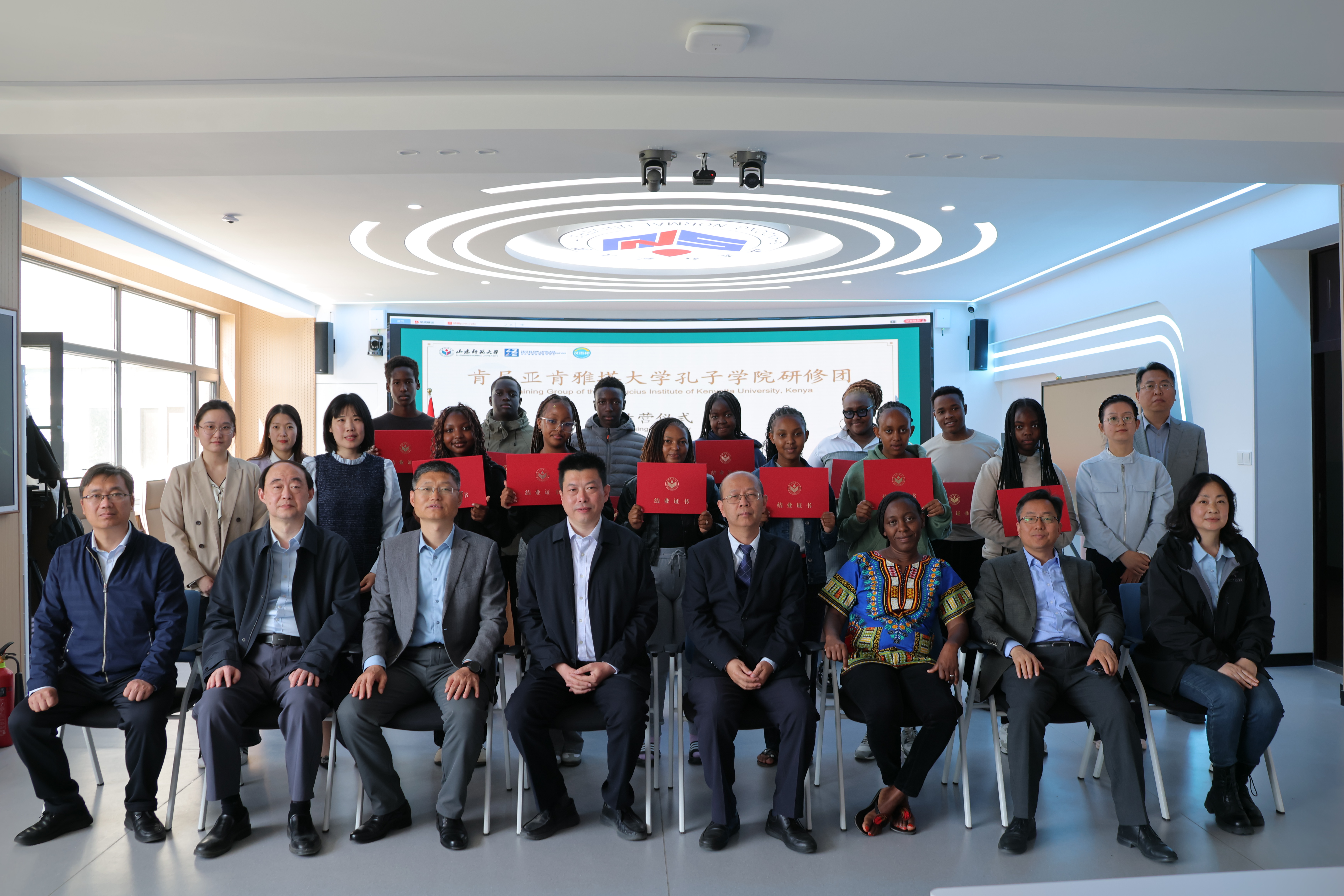 北京時(shí)間4月15日上午,由教育部中外語(yǔ)言交流合作中心主辦、山東師范大學(xué)國(guó)際教育學(xué)院(留學(xué)生工作辦公室)承辦的2025年“漢語(yǔ)橋”來(lái)華團(tuán)組交流項(xiàng)目——肯尼亞肯雅塔大學(xué)孔子學(xué)院研修團(tuán)順利結(jié)營(yíng)。肯雅塔大學(xué)孔子學(xué)院中方院長(zhǎng)周曉東、國(guó)際教育學(xué)院(留學(xué)生工作辦公室)黨委書(shū)記劉金凱、國(guó)際教育學(xué)院(留學(xué)生工作辦公室)院長(zhǎng)、主任馬茂祥、留學(xué)生教育系系主任常慶豐、教師代表賀莉娜及肯雅塔大學(xué)孔子學(xué)院研修團(tuán)帶隊(duì)教師和研修團(tuán)全體師生、留學(xué)生工作辦公室相關(guān)教師、志愿者參加了結(jié)營(yíng)儀式。留學(xué)生工作辦公室吳燕妮主持儀式。