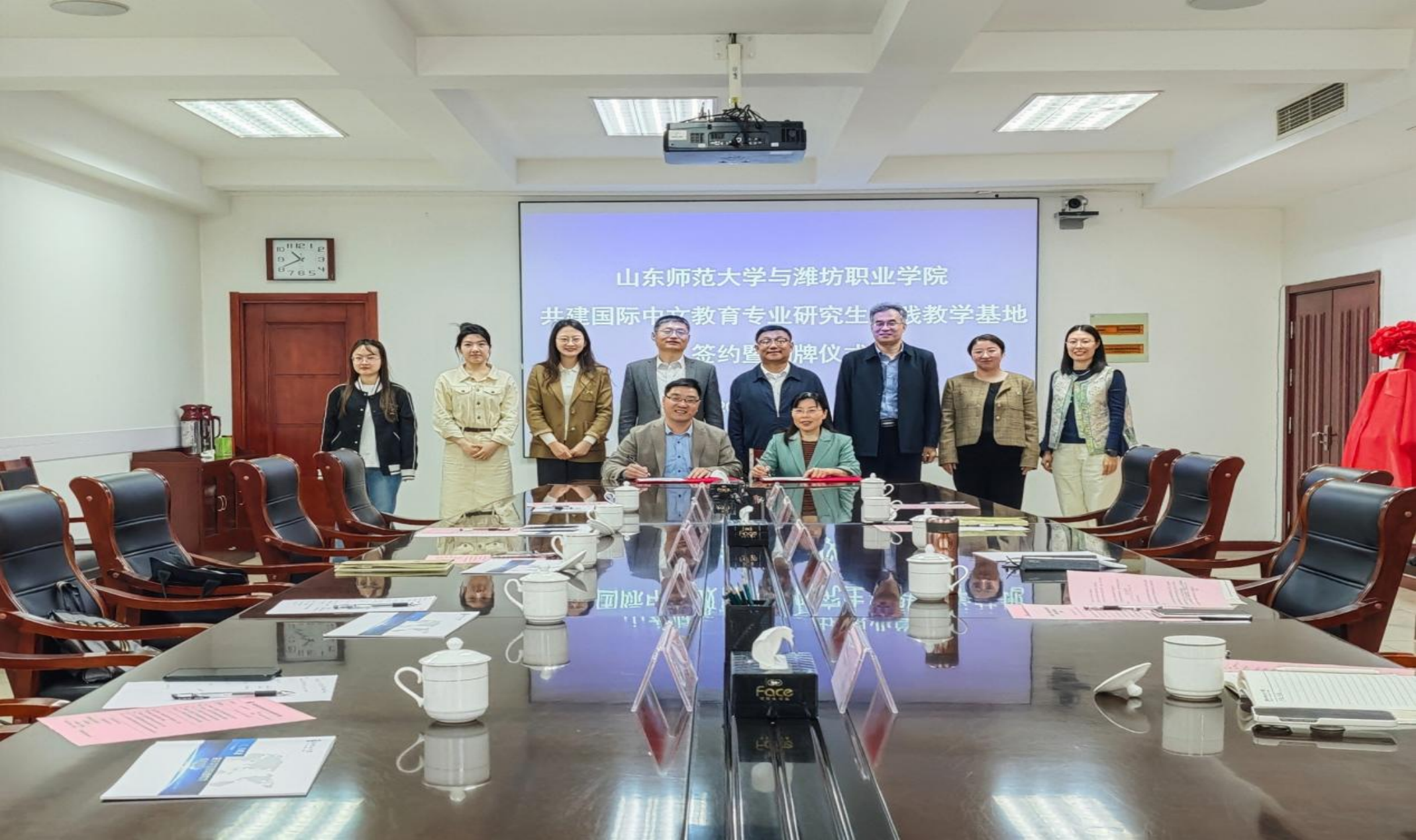 4月16日,山東師范大學(xué)與濰坊職業(yè)學(xué)院共建國際中文教育專業(yè)研究生實(shí)踐教學(xué)基地簽約暨揭牌儀式在濰坊職業(yè)學(xué)院舉行。濰坊職業(yè)學(xué)院黨委副書記、院長韓瑞東,副院長陳美霞,國際交流與合作處處長藺永剛,山東師范大學(xué)國際教育學(xué)院黨委書記劉金凱,副院長王其和出席儀式。儀式由濰坊職業(yè)學(xué)院副院長陳美霞主持。