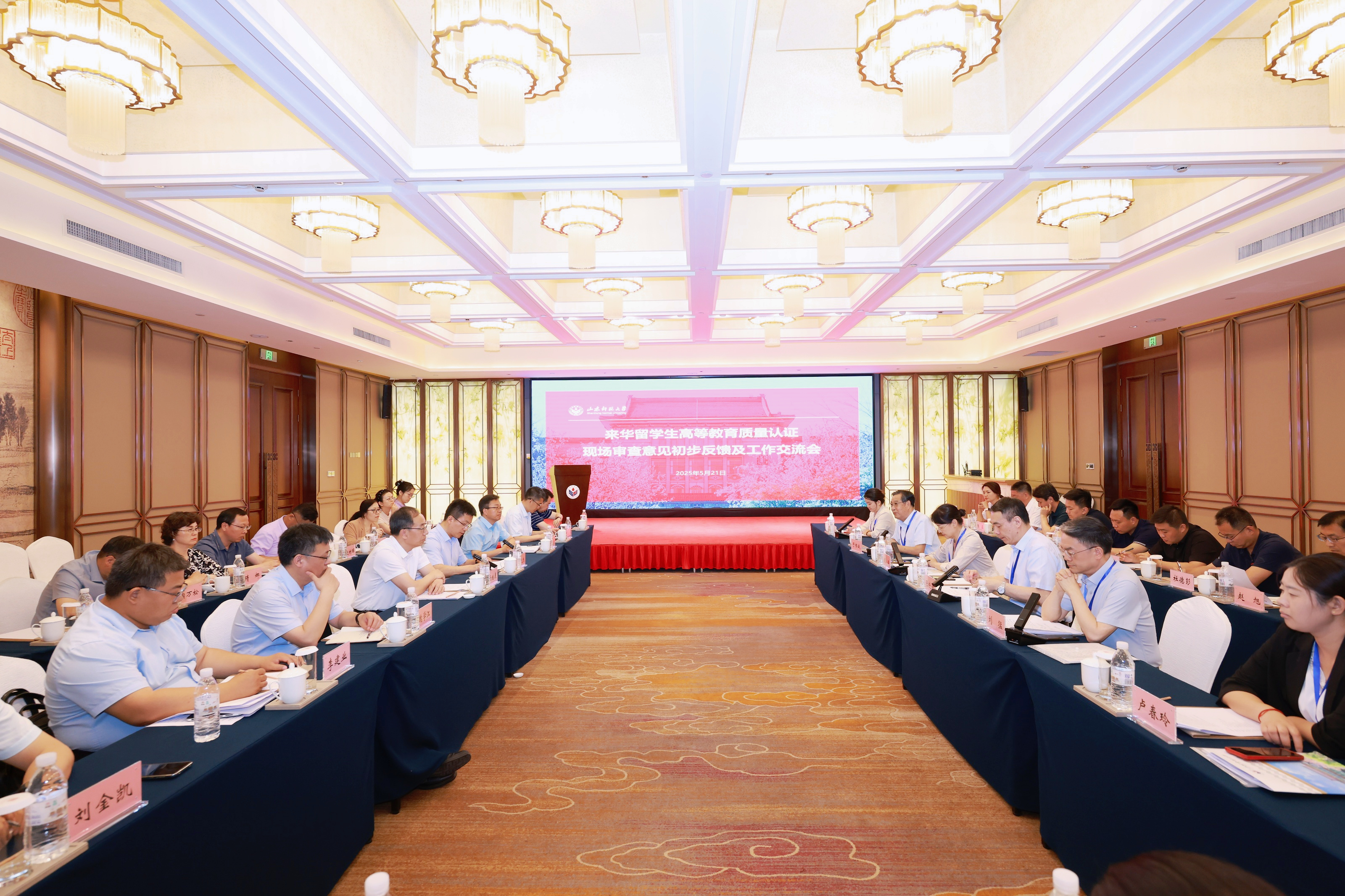 5月20日至21日,受教育部委托,中國教育國際交流協(xié)會(huì)原副秘書長(zhǎng)、審查員周燕及由哈爾濱師范大學(xué)國際教育學(xué)院院長(zhǎng)張曉濤任組長(zhǎng)的六人認(rèn)證專家組對(duì)山東師范大學(xué)來華留學(xué)生高等教育質(zhì)量認(rèn)證開展現(xiàn)場(chǎng)審查。學(xué)校黨委書記馮繼康出席現(xiàn)場(chǎng)審查意見初步反饋和工作交流會(huì),校長(zhǎng)張建出席現(xiàn)場(chǎng)審查認(rèn)證小組進(jìn)校說明會(huì),學(xué)校相關(guān)職能部門、院系負(fù)責(zé)人及認(rèn)證工作相關(guān)人員參加會(huì)議,會(huì)議分別由副校長(zhǎng)鄭元杰、副校長(zhǎng)李娜主持。