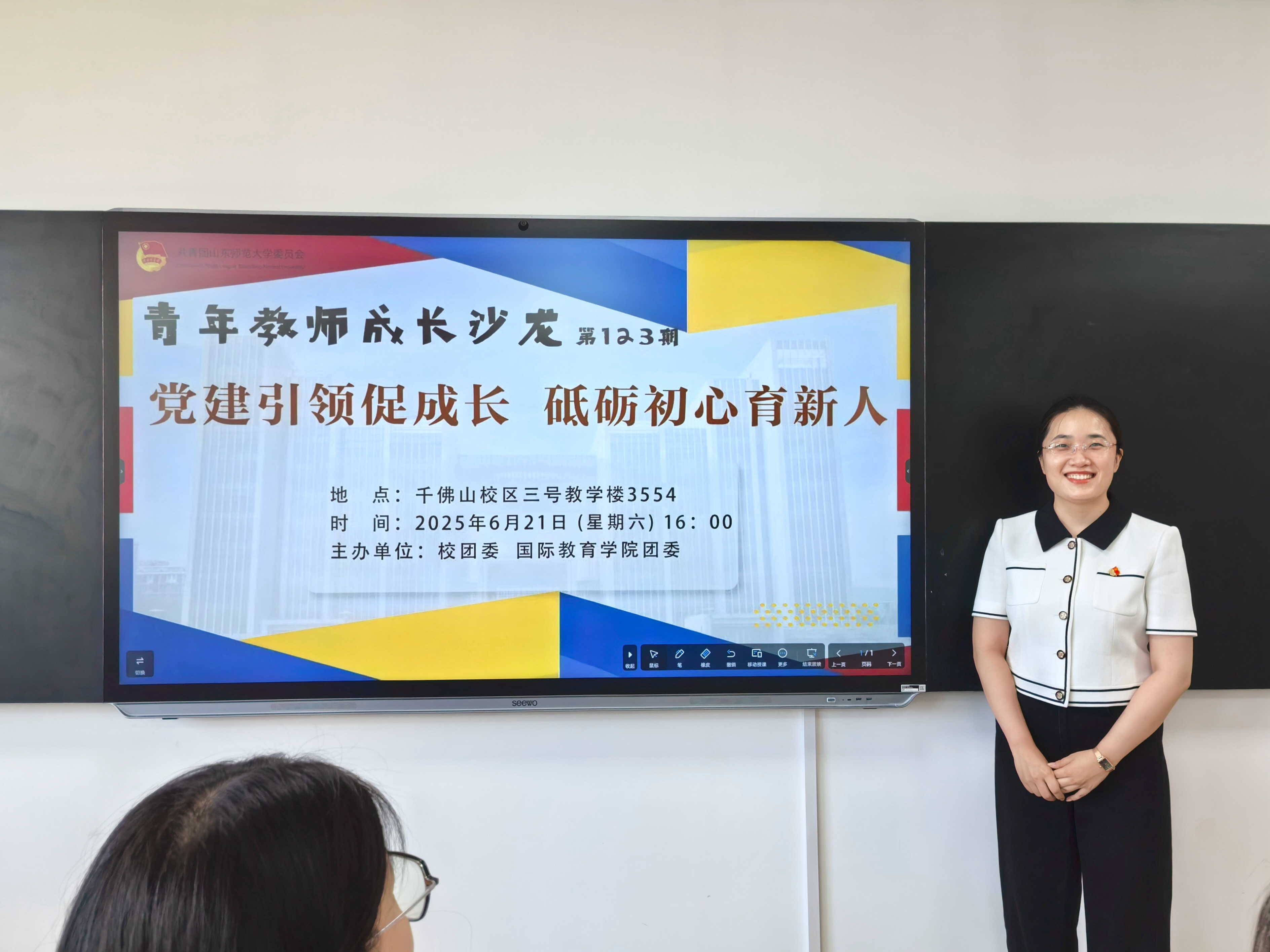 2025年6月21日,國際教育學(xué)院于千佛山校區(qū)教學(xué)三樓3554教室成功舉辦第123期青年教師成長沙龍活動(dòng)。本次活動(dòng)以“黨建引領(lǐng)促成長,砥礪初心育新人”為主題,特邀國際教育學(xué)院講師黃爽老師擔(dān)任主講人,國際教育學(xué)院學(xué)生第一黨支部全體學(xué)生黨員到場參加。