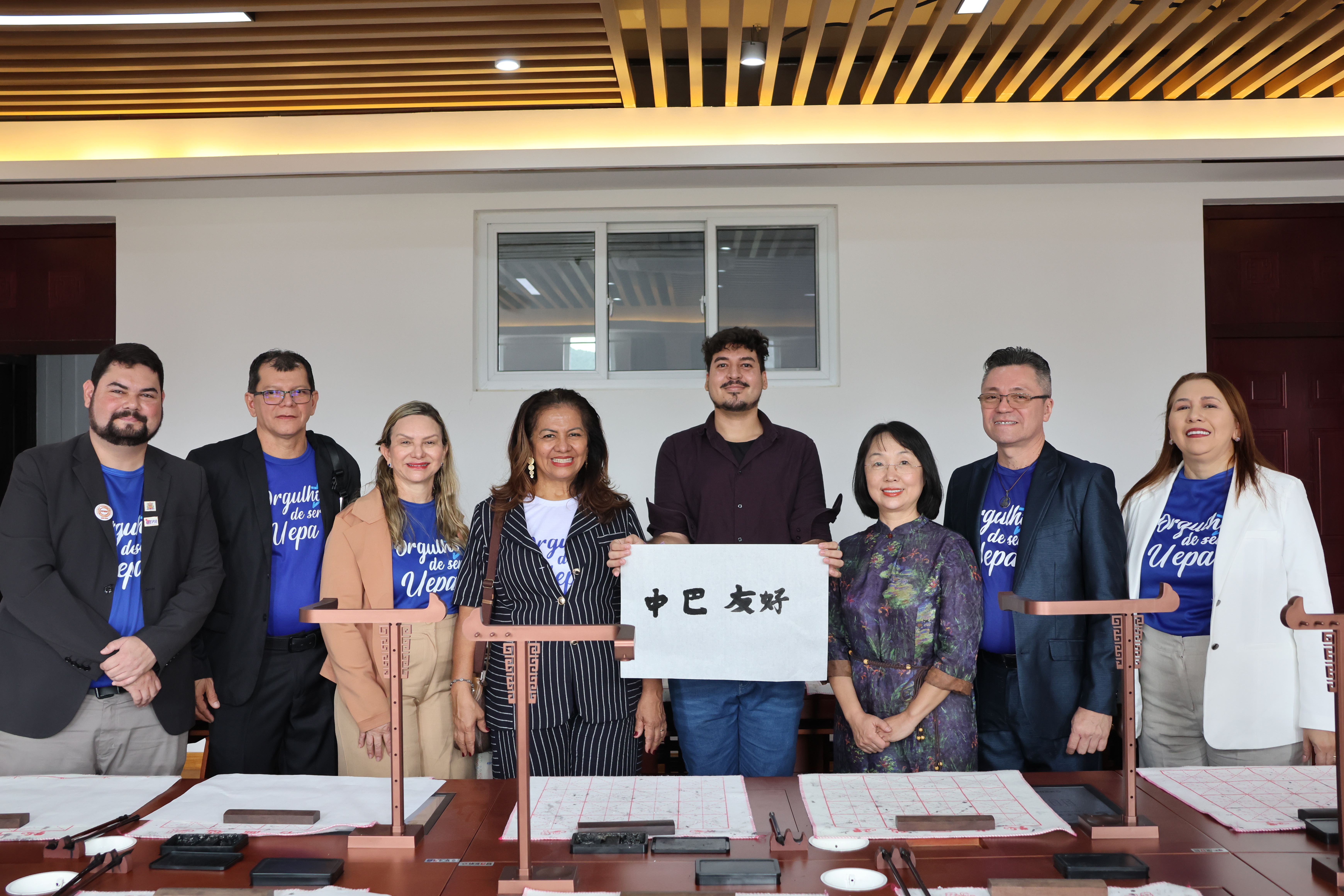 訪問期間,代表團實地參觀學(xué)院教學(xué)環(huán)境與中華文化體驗室,觀摩中國課堂,并親身體驗書法等中華傳統(tǒng)文化才藝。巴西籍國際學(xué)生孫旺德現(xiàn)場書寫“中巴友好”四字,生動展現(xiàn)了文化交流的深厚魅力。