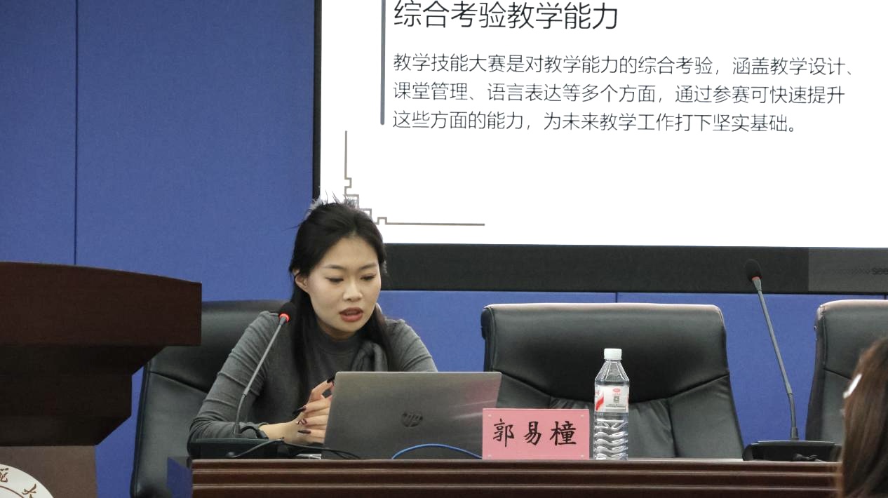 第二屆山東省國際中文教學(xué)技能大賽研究生組一等獎獲得者郭易橦,圍繞教學(xué)技能大賽展開分享。她梳理了中學(xué)西漸杯、漢教英雄會、微課大賽等常見賽事,建議同學(xué)們優(yōu)先選擇與本專業(yè)相關(guān)、自身感興趣或擅長的比賽。針對語法、詞匯、文化三類教學(xué)內(nèi)容,她分享了具體備賽技巧。她還強(qiáng)調(diào)教學(xué)環(huán)節(jié)設(shè)計要完整,導(dǎo)入需吸引注意力,練習(xí)應(yīng)涵蓋機(jī)械性練習(xí)與情景性練習(xí),作業(yè)布置需具體明確,并建議合理運用數(shù)字人、PPT小游戲等數(shù)字化手段提升課堂互動感,展現(xiàn)親切自然的教學(xué)態(tài)度。