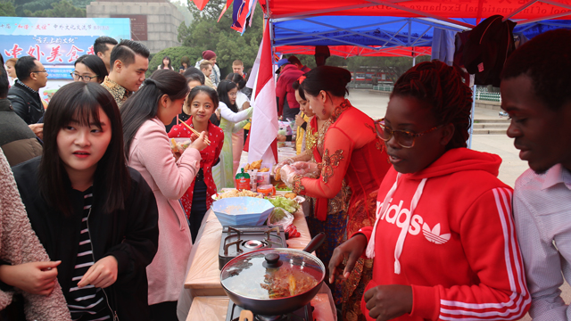 美食節(jié)上,各國(guó)學(xué)生紛紛亮出“看家絕活”,現(xiàn)場(chǎng)制作的韓國(guó)炒年糕和泡菜餅、白俄羅斯烤肉、印尼咖喱面、摩洛哥雞肉卷、烏茲別克斯坦手抓飯、泰國(guó)綠咖喱雞、肯尼亞黑茶和甜品、烏克蘭的餃子、日本的壽司、墨西哥玉米餅,一款款地道的美食,吸引著如織的人流前來(lái)品嘗。中國(guó)師生精心制作的花樣饅頭、特色甜點(diǎn)、葷素大包、中國(guó)火鍋、麻辣燙、水餃、關(guān)東煮等“中國(guó)元素”,各國(guó)留學(xué)生紛紛點(diǎn)贊。意猶未盡的留學(xué)生們,身穿本國(guó)的傳統(tǒng)服裝,伴隨著獨(dú)具特色的本國(guó)音樂(lè)跳起了民族舞蹈。琳瑯滿目的異域美食和獨(dú)具特色的各國(guó)舞蹈使美食節(jié)活動(dòng)現(xiàn)場(chǎng)變成了一片歡樂(lè)的海洋。