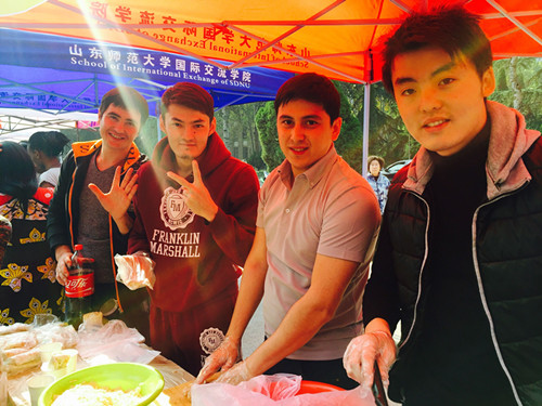 10月28日中午,國(guó)際交流學(xué)院一年一度的“中外美食節(jié)”在學(xué)校千佛山校區(qū)東方紅廣場(chǎng)拉開(kāi)帷幕。來(lái)自31個(gè)國(guó)家的近二百名外國(guó)留學(xué)生和學(xué)院的中國(guó)師生各顯身手,制作特色各異的各國(guó)美食,演繹異彩紛呈的“舌尖上的文化”。