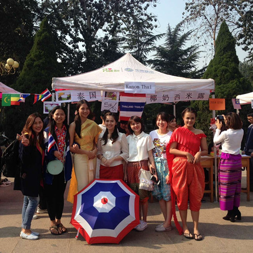 來(lái)自泰國(guó)、肯尼亞、印度尼西亞等國(guó)的留學(xué)生們,更是身穿本國(guó)傳統(tǒng)服裝,伴隨著獨(dú)具特色的本國(guó)音樂(lè)在各自攤位前跳起了民族舞蹈。琳瑯滿目的異域美食和獨(dú)具異域風(fēng)情的民族服飾和舞蹈吸引了眾多山師學(xué)子和不少市民前來(lái)觀看,活動(dòng)現(xiàn)場(chǎng)成為一片歡樂(lè)的海洋。