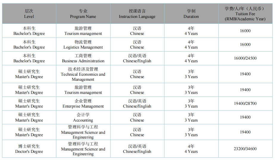 The Business School comprises six departments: Information Management, E-commerce, Business Administration, Accounting, Tourism Management, and a Sino-foreign Joint Education Division. Moreover, there are educational centers such as the MBA Center, MTA Center, MPAcc Center, and International MBA Center. The school offers seven undergraduate programs: Information Management and Information Systems (a top-tier national undergraduate program), E-commerce, Business Administration, Accounting, Tourism Management, Financial Management, and Logistics Management.