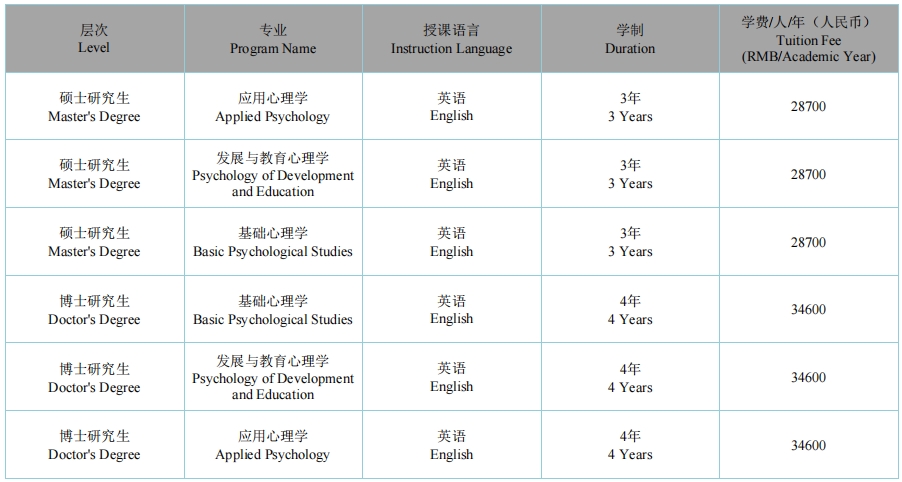 The school provides a first-level doctoral and master’s discipline of Psychology, including three programs: Basic Psychology, Developmental and Educational Psychology, and Applied Psychology, and offers two professional master’s programs: Mental Health Education and Applied Psychology, among which Mental Health Education admits full-time and part-time postgraduate students. The second-level discipline of Developmental and Educational Psychology is a traditional advanced and characteristic major of the school, which ranks among the top across the country in overall strength and enjoys a good international reputation and influence. The school is configured with advanced and sound psychological experimental teaching and scientific research instruments and equipment, with a laboratory covering an area of more than 6,000m2 and the equipment valuing over RMB 40 million. Moreover, the school has also established more than 10 function rooms, including digital behavior observation room, near infrared brain imaging room, gene sequencing room, EEG room, polygraph room, attention deficit testing room, eye movement and reading room, experimental data processing center, etc., as well as 7 professional laboratories, such as general psychology and experimental psychology laboratory, developmental and educational psychology laboratory, psychological counseling and simulation teaching laboratory, development behavioral genetics laboratory, cognitive neuroscience laboratory, engineering psychology and human resource management laboratory, public psychology laboratory and so on.